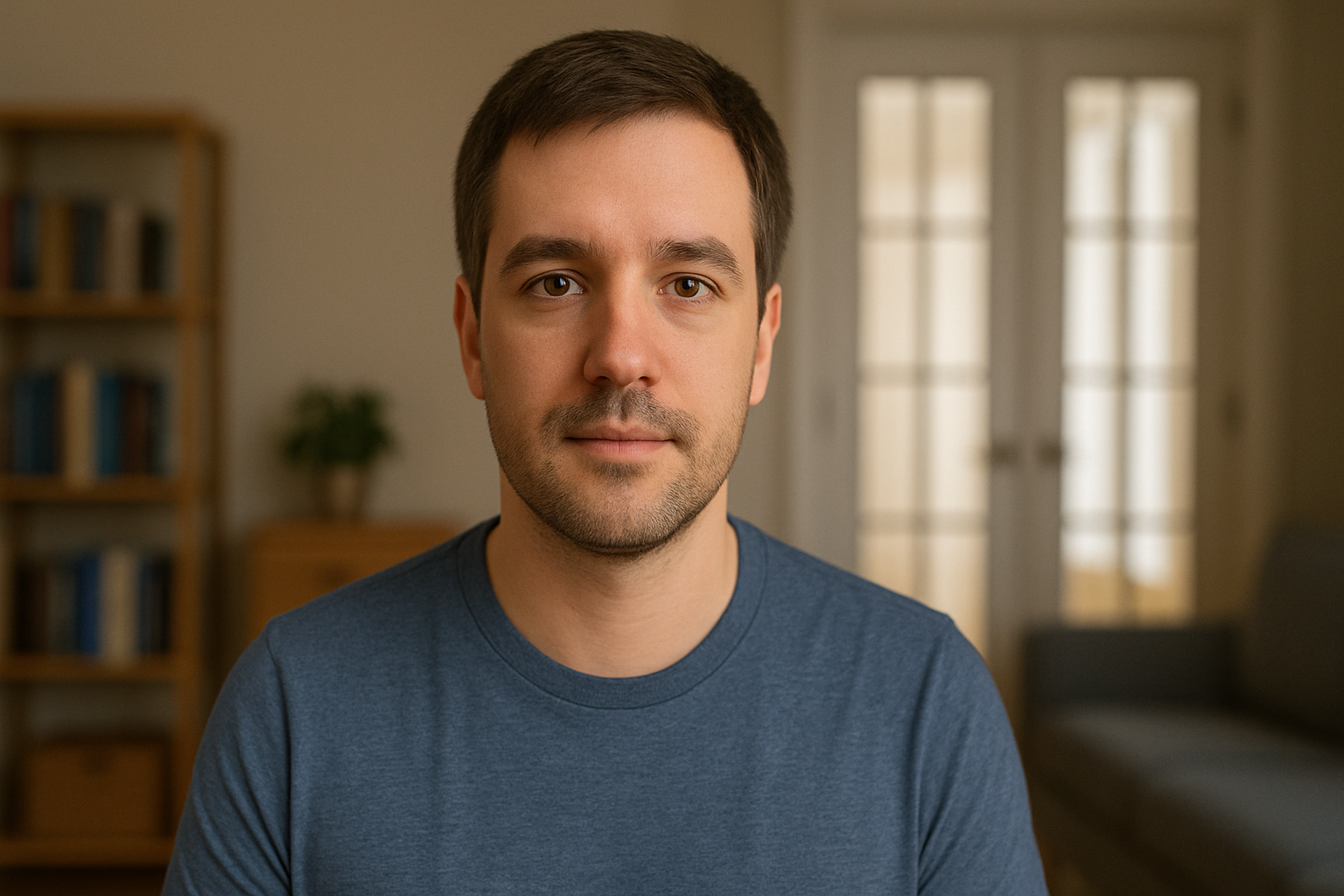 Keep it simple – for example, a few bookshelves, plants, or a tidy part of the room.